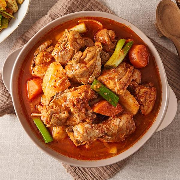 - 필수 재료: 닭고기(800g), 감자(2개), 양파(1개), 당근(1개), 대파(1대), 청양고추(2개), 다진 마늘, 간장, 고춧가루, 후추.