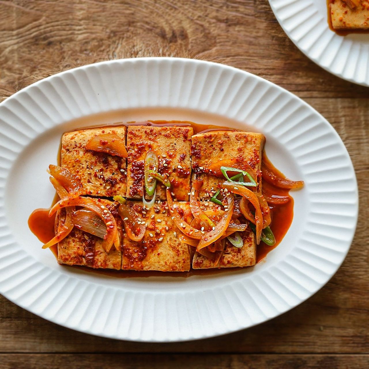 - 두부를 먼저 구워주는 것이 비법입니다. 이렇게 하면 두부가 단단해지면서 양념이 더 잘 배어들고 식감도 좋아져요.