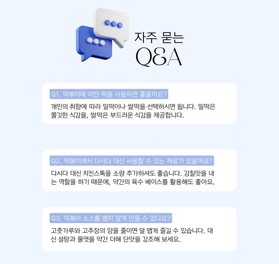 이제 떡볶이 황금레시피로 본격적인 요리를 시작해볼까요?