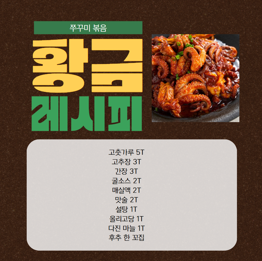 A. 당연히 가능합니다! 남은 양념은 닭볶음탕, 두부조림 등 다른 매운 요리에 활용하면 맛있게 사용할 수 있어요. - Q3. 더 매운 쭈꾸미볶음을 만들고 싶다면 어떻게 해야 하나요?